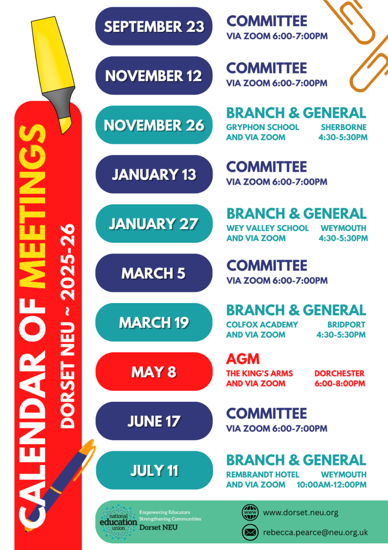 Dorset NEU Meeting Schedule for the Academic Year 2025-26