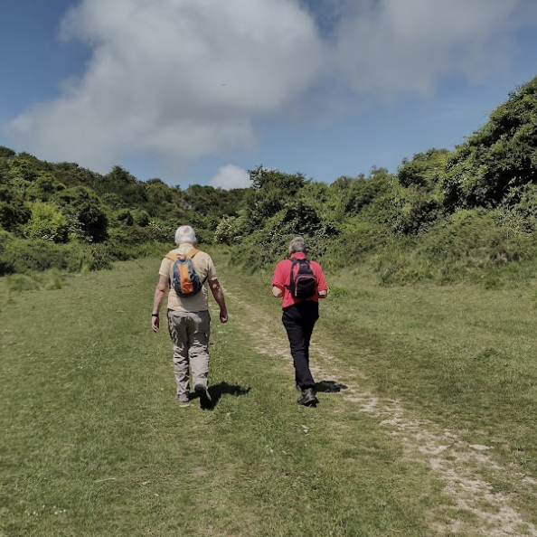 This group ventured down the valley to Winspit before tackling the 70 steps up to Seacombe. The climb was rewarded with spectacular views of the Jurassic coastline stretching toward Anvil Point Lighthouse. The scenery was so captivating that the shouts from above went completely unnoticed! After another set of steps down near Seacombe, the group made their way back up the valley toward Worth Matravers—one last short flight of steps before reaching the finish line.